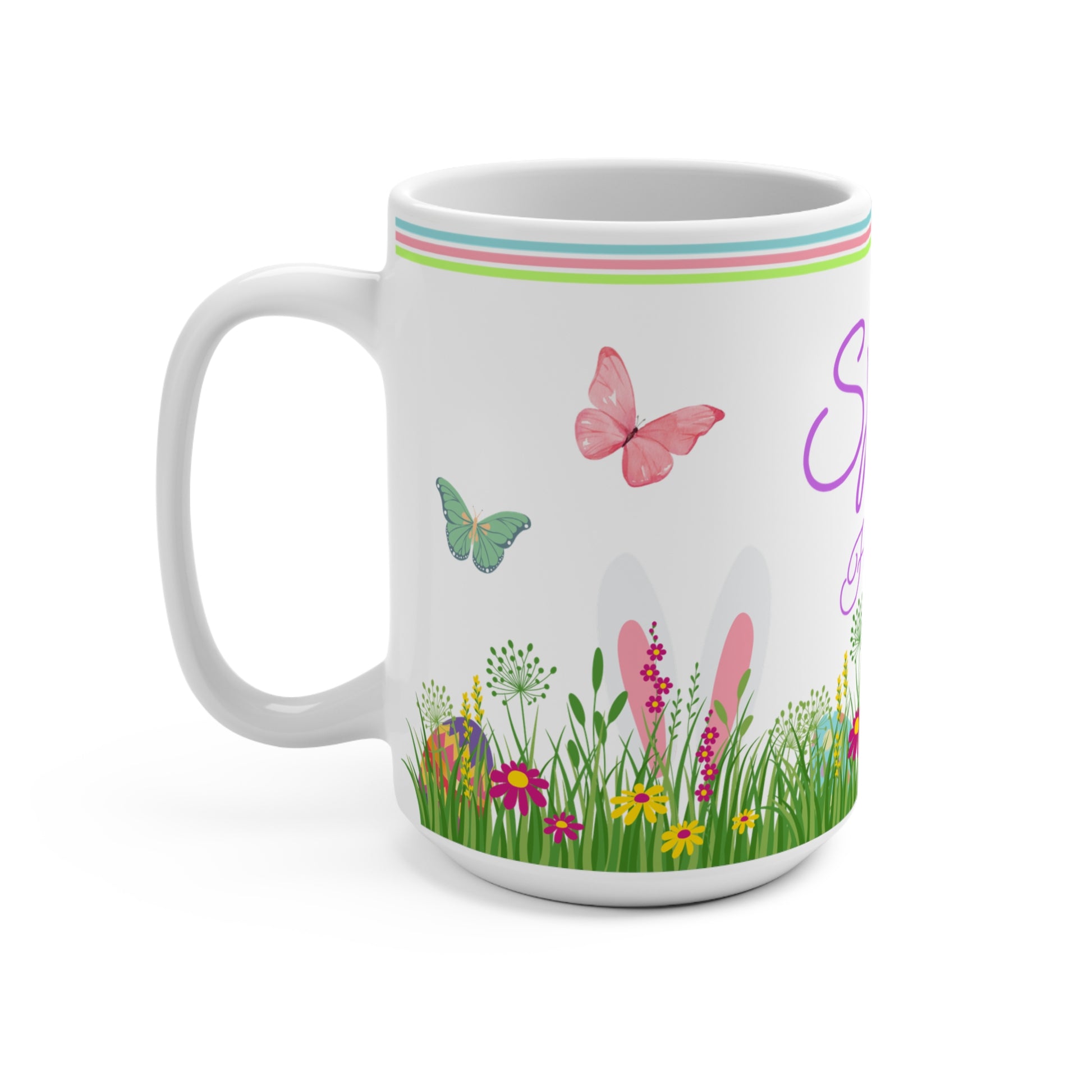 Embrace the beauty of nature with our delightful 15 oz. coffee mug. This vibrant mug showcases a stunning floral design, infused with colorful butterflies, perfect for welcoming spring into your home. The cheerful aesthetic of the mug radiates joy and warmth, making it an ideal companion for your morning coffee or afternoon tea. It’s not just a mug; it’s a celebration of life's little moments. Perfect for plant lovers, nature enthusiasts, or anyone looking to add a touch of spring to their daily routine. This mug makes a wonderful gift for birthdays, Easter, or just because. Brighten someone’s day with a thoughtful gesture, or treat yourself to a little piece of happiness!