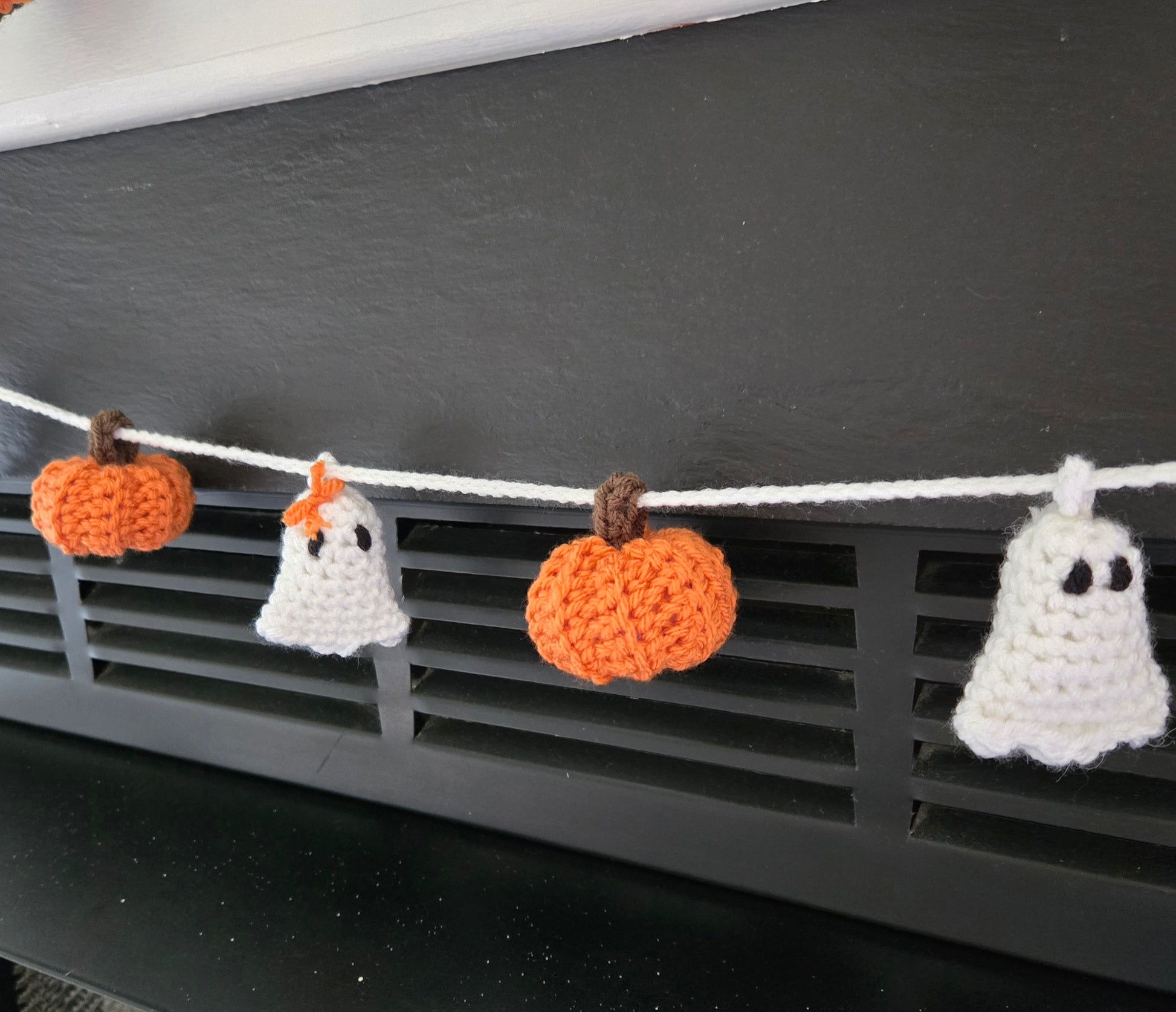 Halloween Ghosts & Pumpkins Garland – Crochet Spooky Party Decor