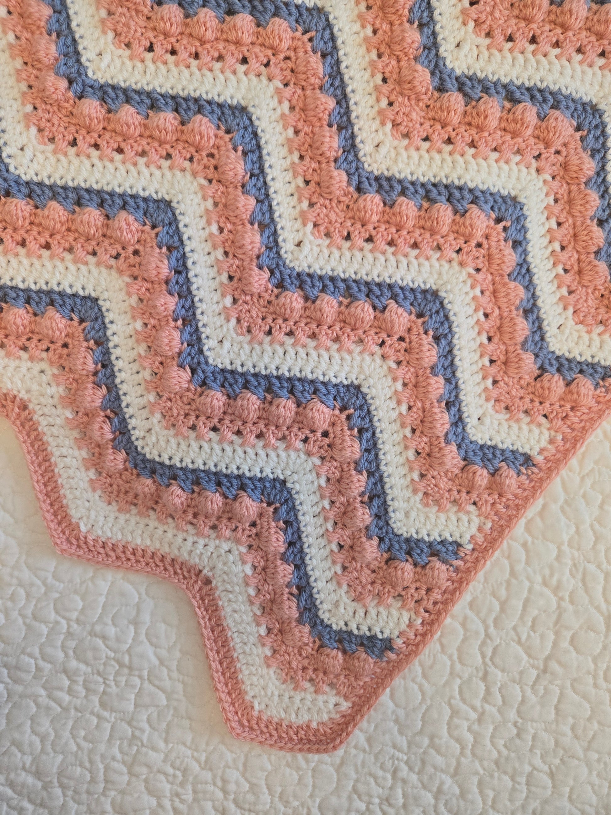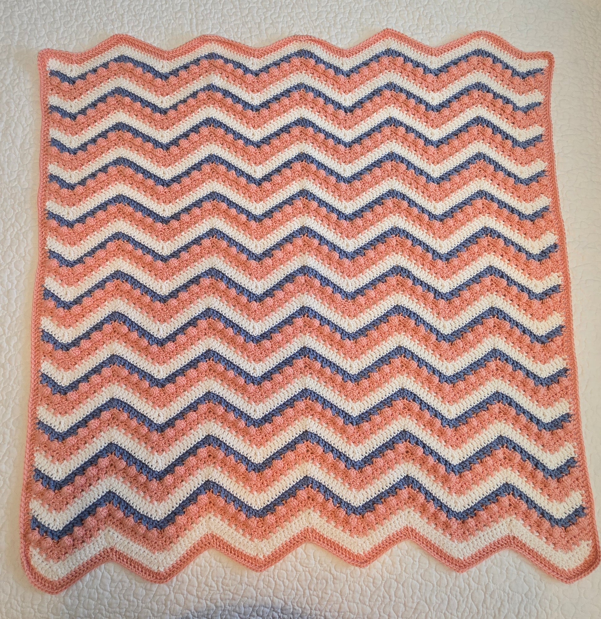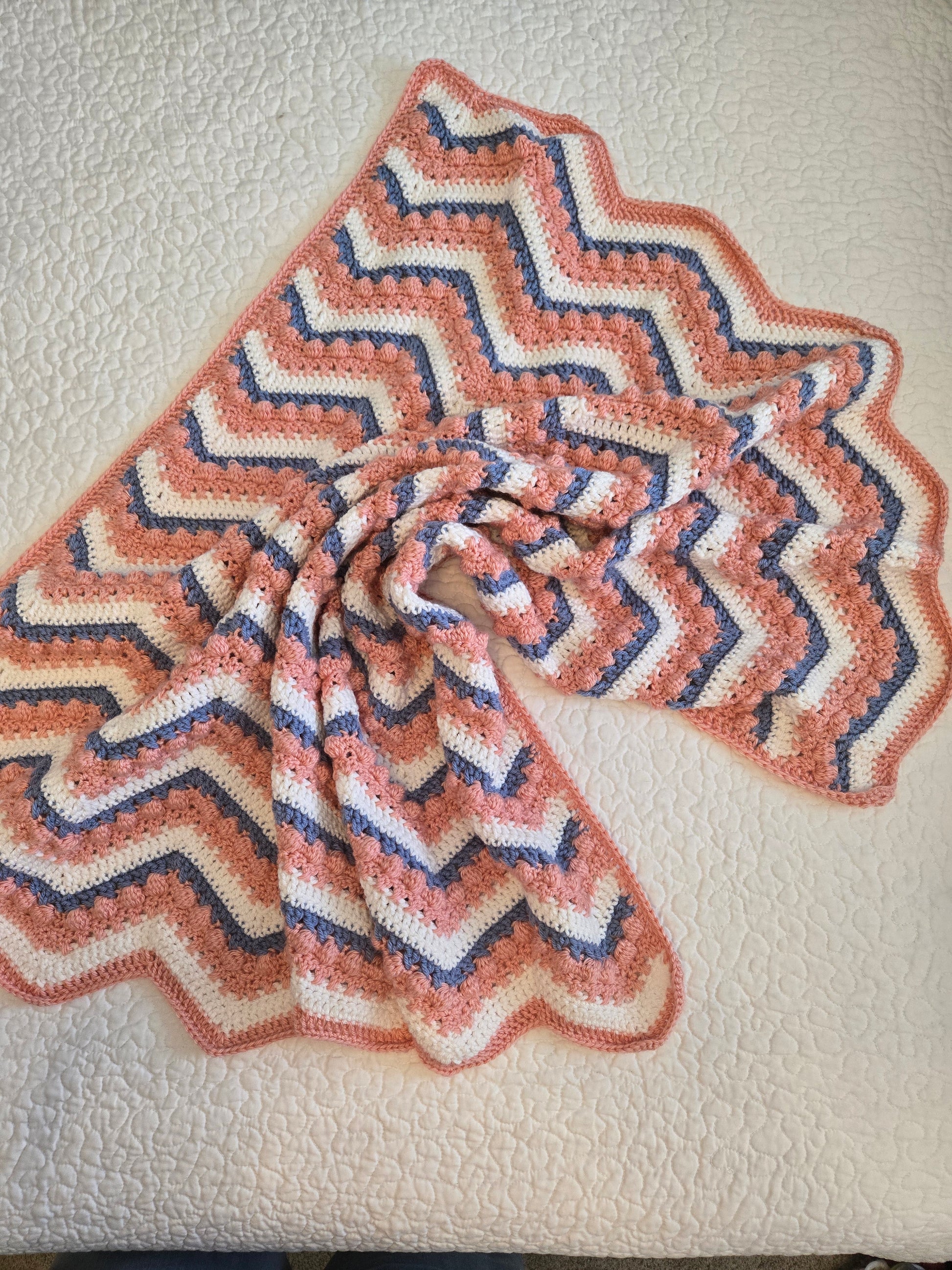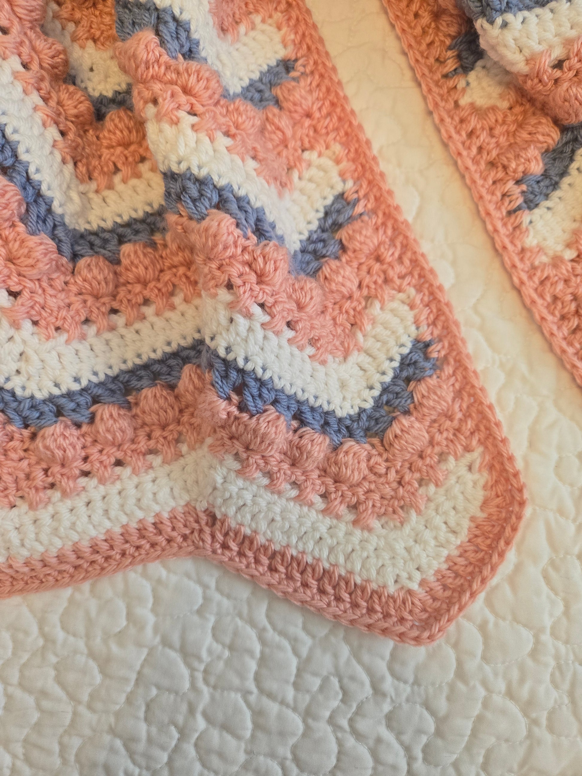 Handcrafted Pink, Blue & White Striped Heirloom Baby Blanket