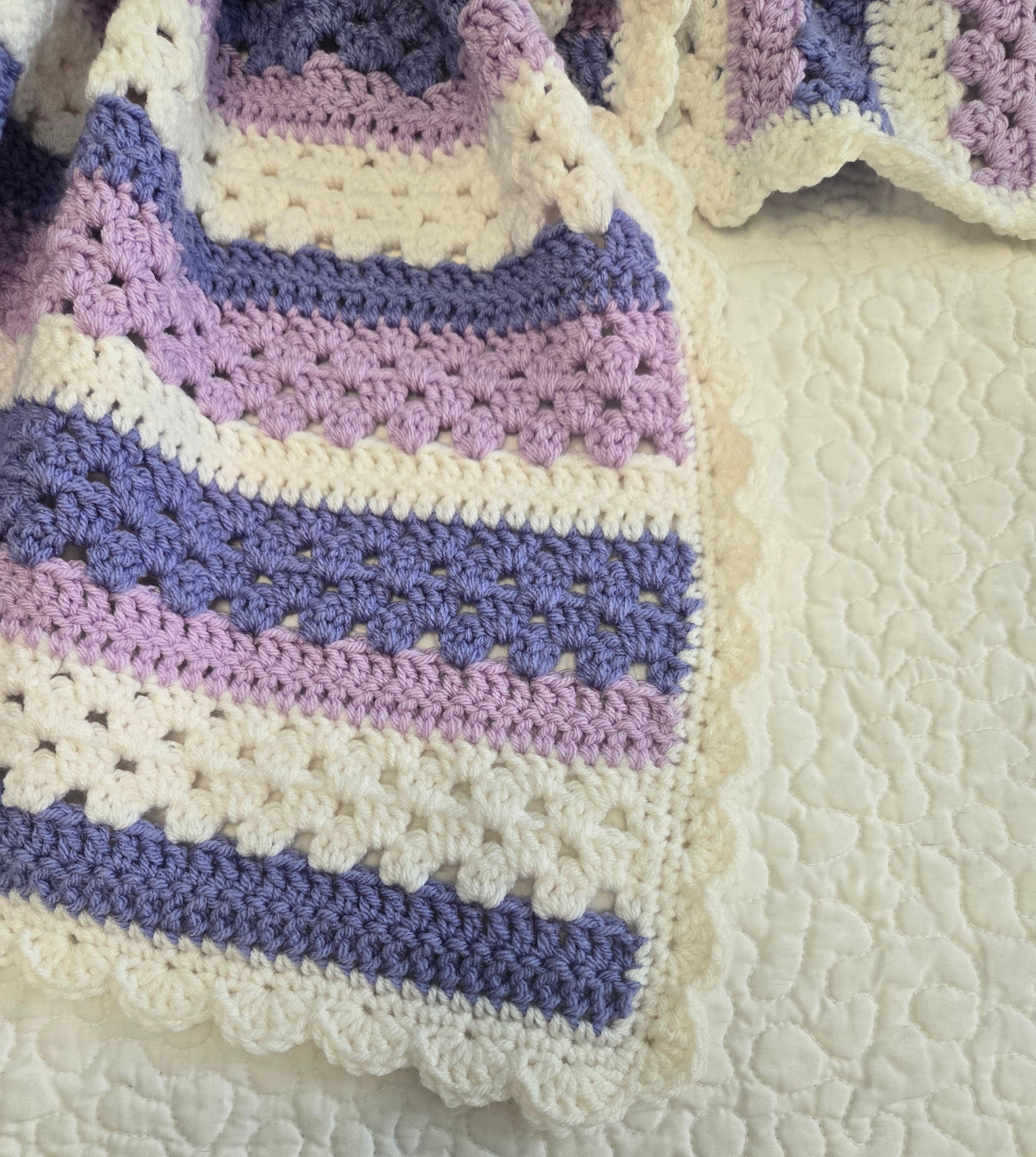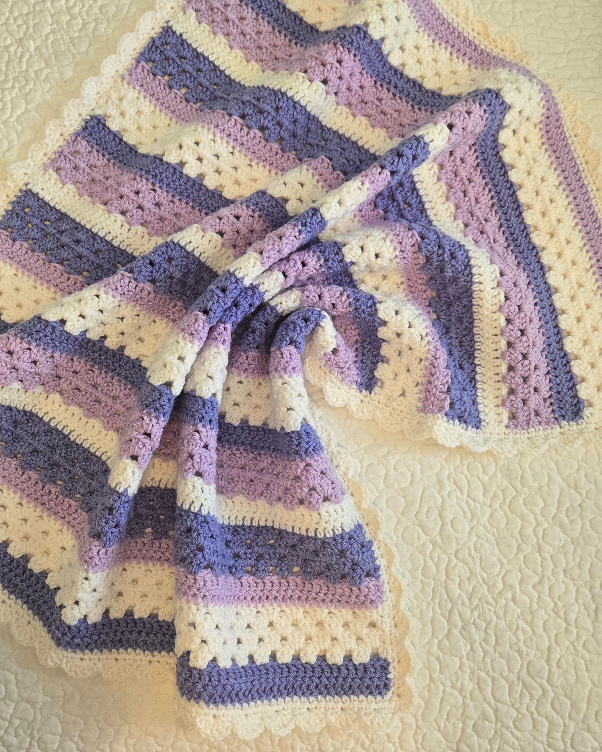 Whether you’re preparing for your own bundle of joy or searching for a heartfelt, one-of-a-kind present, this lavender and white crochet blanket is a beautiful way to celebrate life’s sweetest moments.