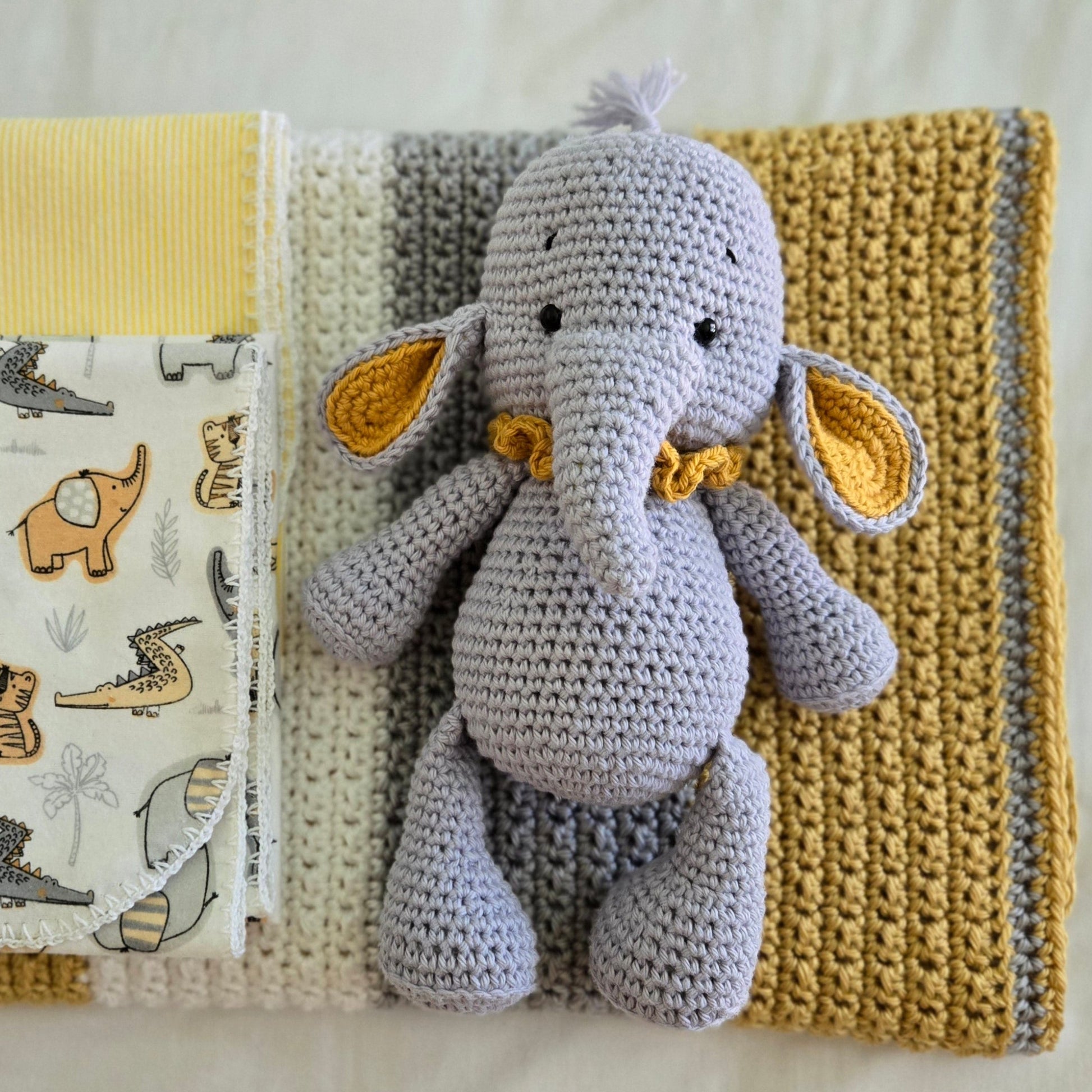 Wrap your little one in the perfect mix of cozy and charming with our handcrafted crochet blanket, crochet edged receiving blankets and coordinating plush. Carefully made for a good night's sleep, these blankets envelop your baby in warmth and softness. More than just essentials, these handmade treasures become cherished keepsakes, enduring the test of time as beloved family heirlooms. Ideal for baby showers, our blankets and plush toys offer a thoughtful and practical gift that combines warmth and sentiment. The intricate craftsmanship and timeless designs of our blankets and plush toys add a touch of elegance, creating a cozy and inviting atmosphere for your little one. Embrace the warmth of handmade love and give your baby the gift of a lifetime.
