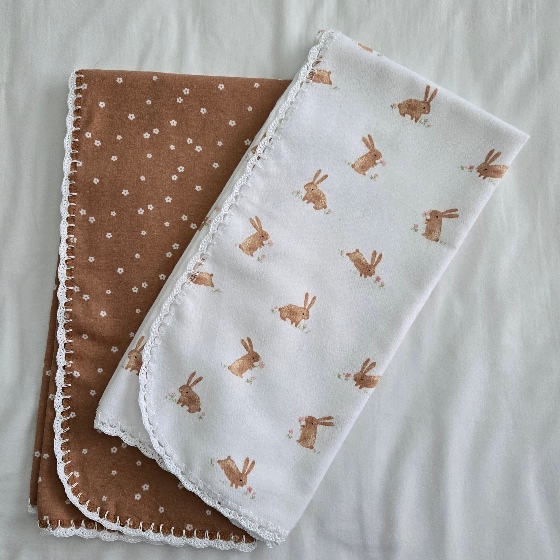 Wrap your little one in the perfect mix of cozy and charming  with our handcrafted crochet blanket, crochet edged receiving blankets and coordinating plush. Carefully made for a good night's sleep, these blankets envelop your baby in warmth and softness. More than just essentials, these handmade treasures become cherished keepsakes, enduring the test of time as beloved family heirlooms. Ideal for baby showers, our blankets and plush toys offer a thoughtful and practical gift that combines warmth and sentiment.  The intricate craftsmanship and timeless designs of our blankets and plush toys add a touch of elegance, creating a cozy and inviting atmosphere for your little one.  Embrace the warmth of handmade love and give your baby the gift of a lifetime.