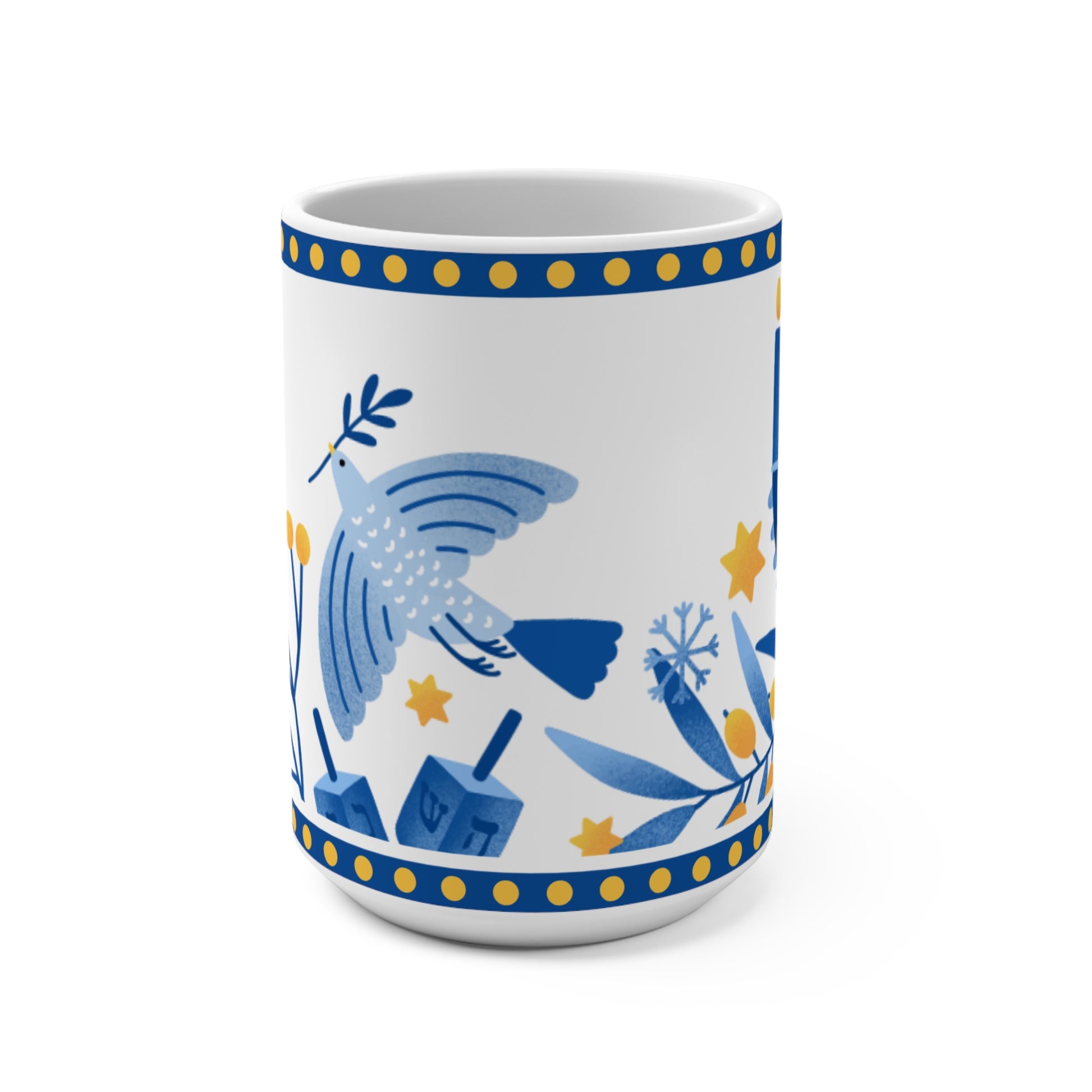 Festival of Lights Hanukkah Mug - Menorah & Dreidel Ceramic Cup for Jewish Holiday