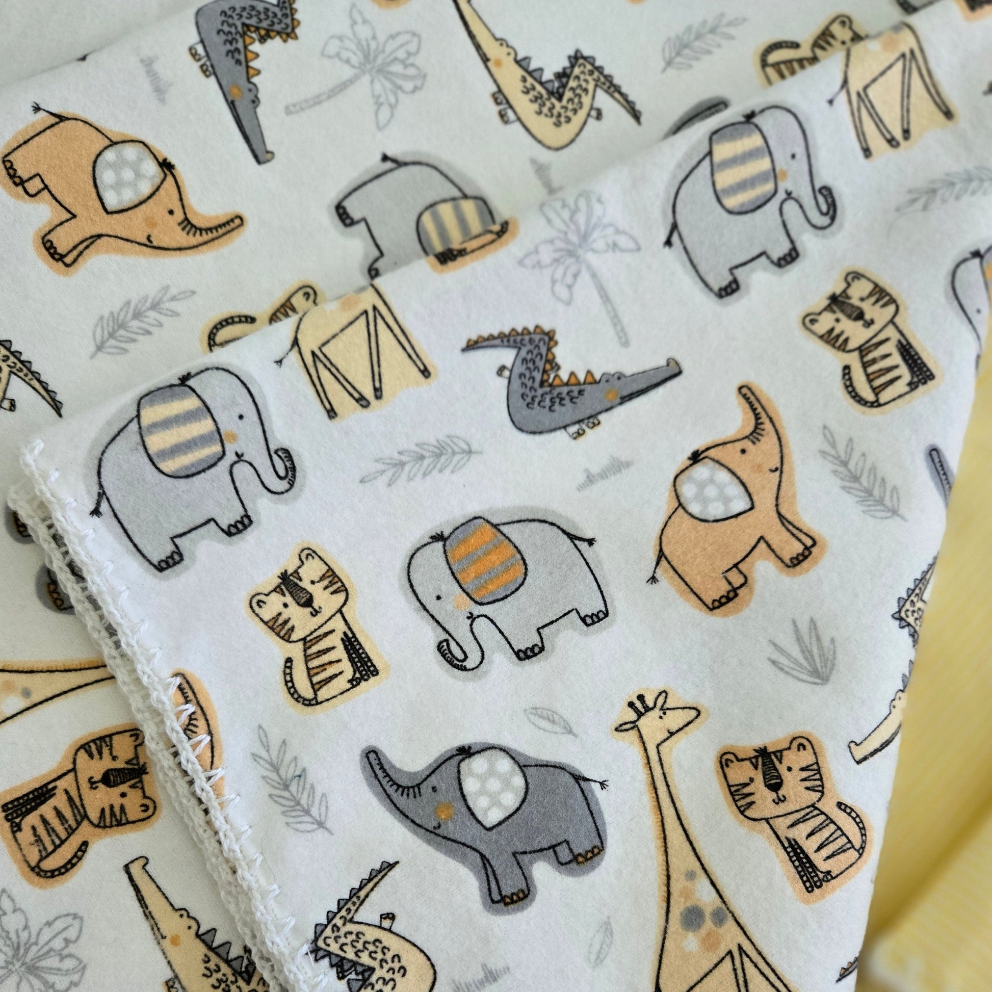 Wrap your little one in comfort and style with our 100% Cotton Flannel Receiving Blankets featuring delicate crocheted edging. Perfect for swaddling, nursing, or as a cozy layer in the stroller, these handcrafted blankets are designed with your baby’s comfort in mind. The breathable cotton flannel ensures a soft touch against your baby's sensitive skin, while the intricate crochet trim adds a charming, timeless detail. Available in a variety of adorable patterns and colors, our receiving blankets are a must-have for any nursery. Whether you're looking for a thoughtful baby shower gift or a versatile addition to your own collection, these blankets promise quality and elegance.