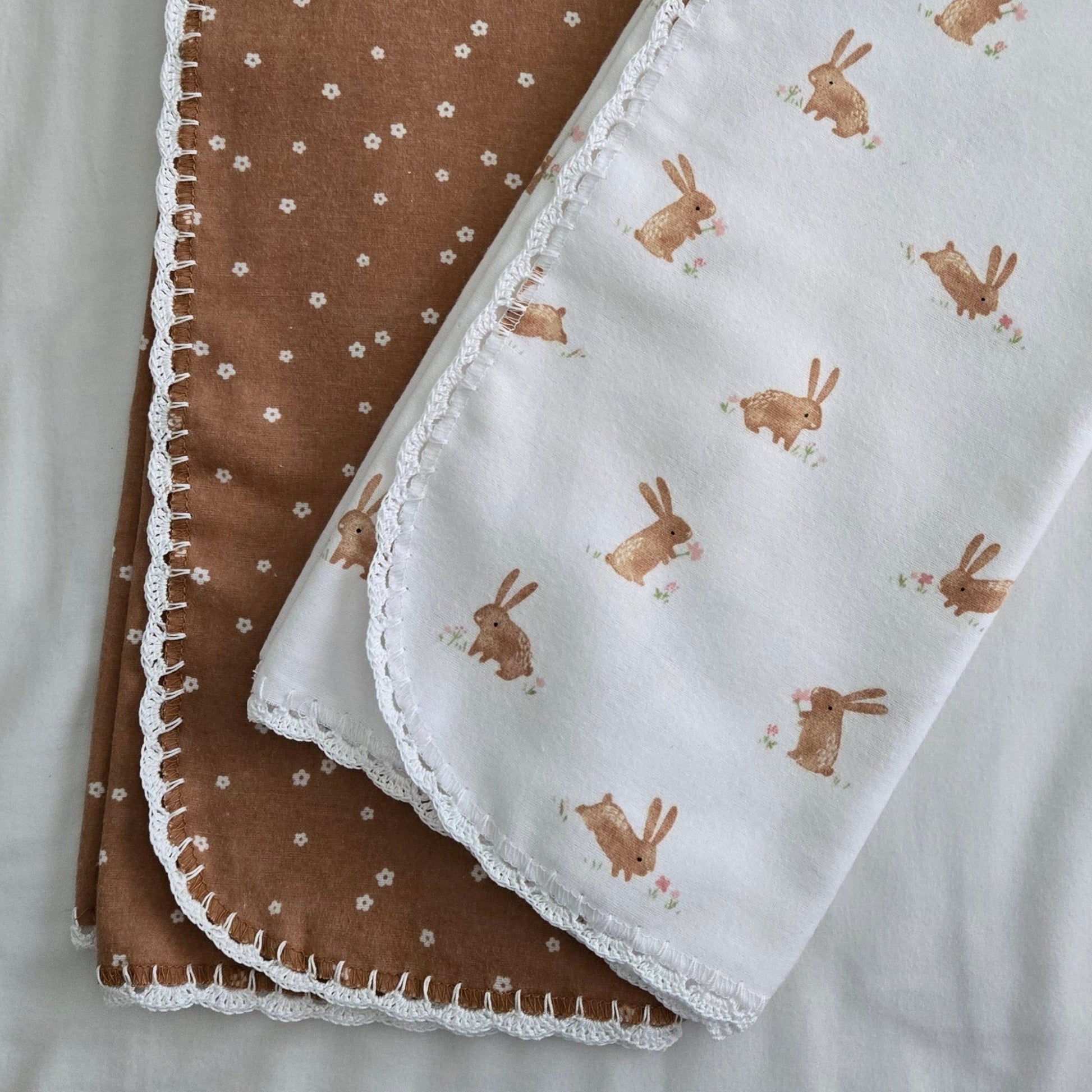 Soft Flannel Receiving Blankets with Handmade Crochet Edging