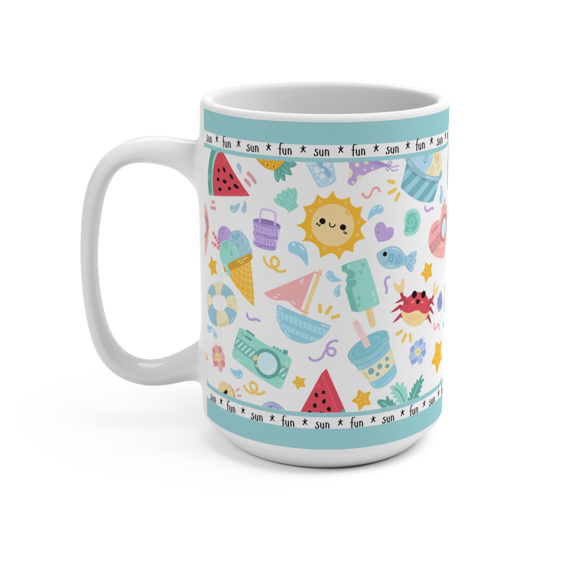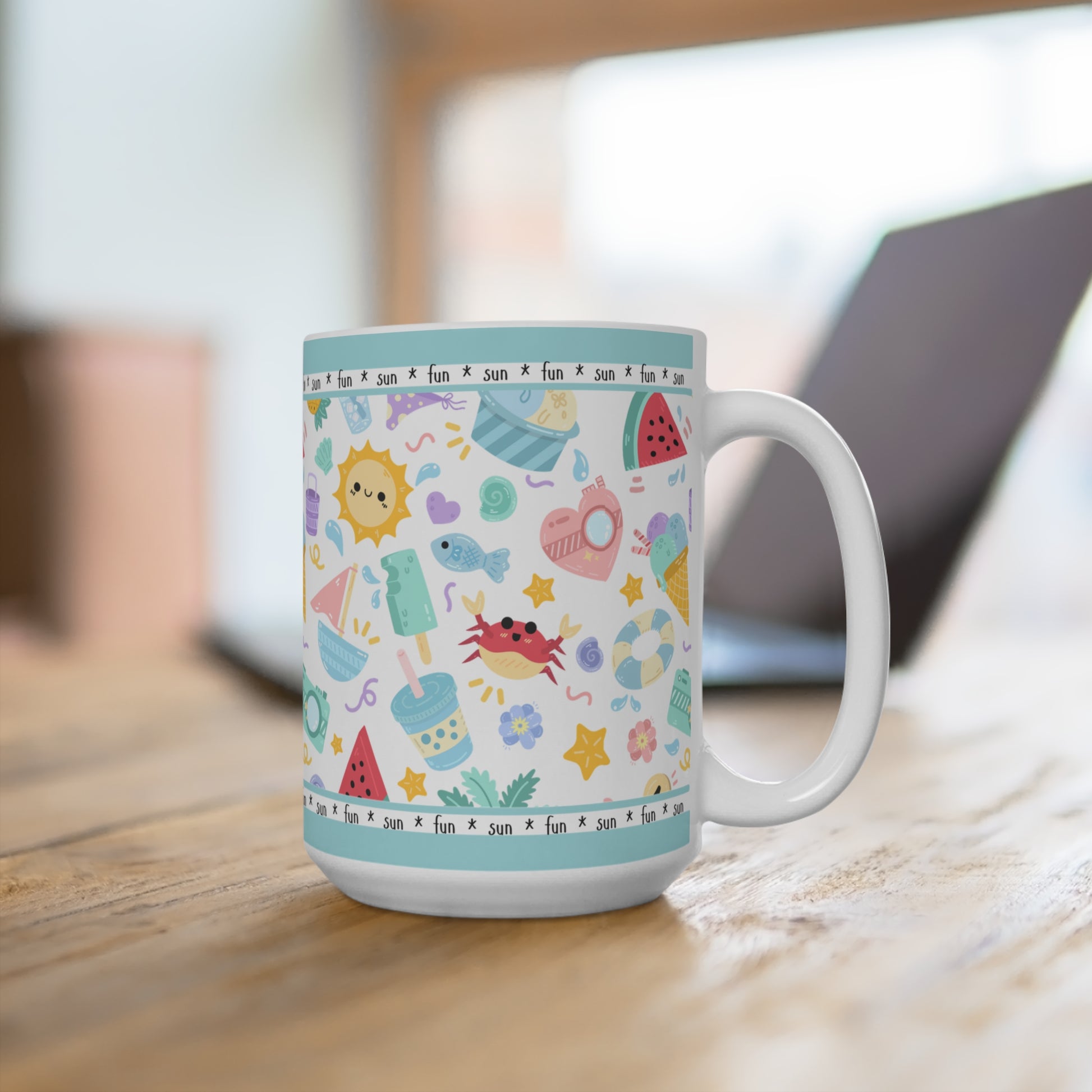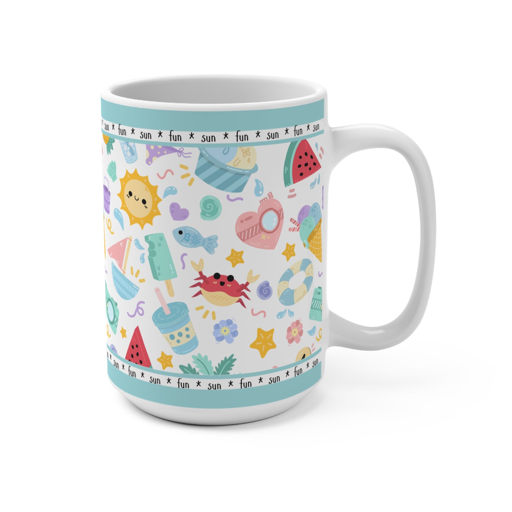Sip sunshine with every cup! Our Whimsical Summer Fun mug is a cheerful celebration of warm days, bright blooms, and playful vibes. Whether you're dreaming of beach days or just need a splash of joy in your morning routine, this 15 oz mug brings the summer magic straight to your hands.