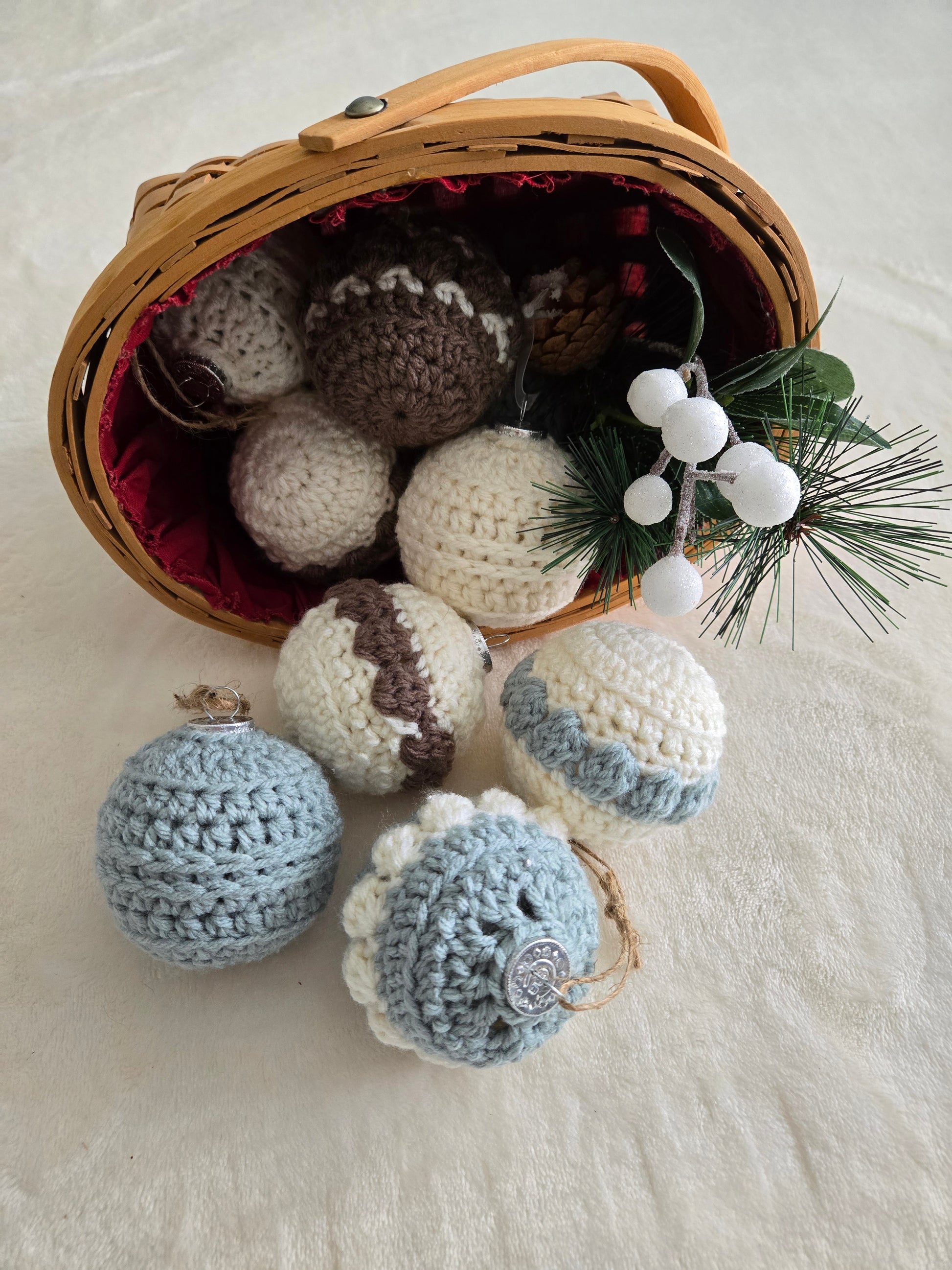 Add a touch of natural charm to your holiday decor with this set of 6 Woodland Calm Crochet Christmas Ornaments. Each ornament is handmade in serene hues of sage green, bark, and cream, reflecting the peaceful beauty of a winter woodland. Perfect for Christmas trees, holiday wreaths, or as unique gift toppers, these ornaments bring a cozy, rustic elegance to any seasonal setup. With delicate crochet details and a nature-inspired color palette, they are crafted to create a timeless look for your holiday traditions.