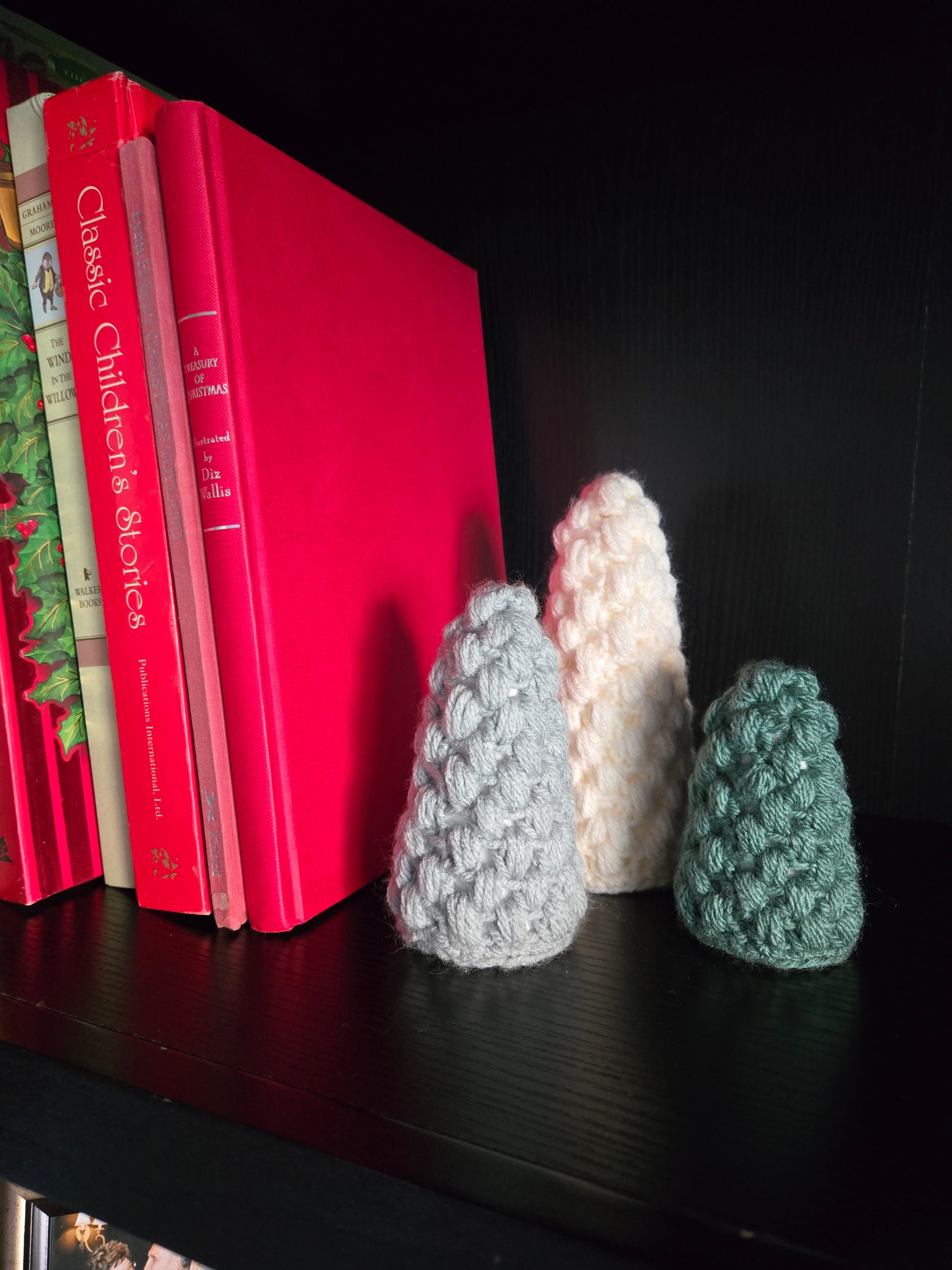 Bring the serene beauty of nature into your holiday decor with our Woodland Calm Crochet Christmas Tree Set. Handcrafted with care, each of the three trees in this set showcases the soothing palette of light green, cream, and bark—perfect for creating a peaceful, rustic ambiance. Whether you're decorating a tabletop, mantle, or festive centerpiece, these crochet trees add a touch of timeless elegance and cozy charm to your home.